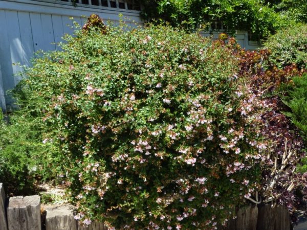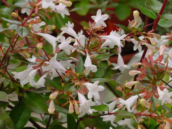 Abelia x grandiflora – an evergreen (semi-evergreen) dense, compact shrub up to 1.5 m high. It blooms from spring to autumn with white flowers. The leaves are shiny, dark green, turning bronze-red in winter. It is planted in groups with other flowering shrubs or on its own. It grows best in sunny and semi-shady places in fertile, water-permeable, slightly acidic and moderately moist soils. Possible to plant in the continental area.
